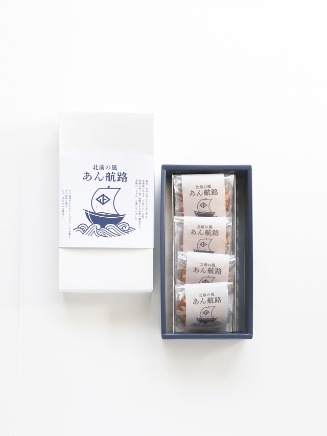 江戸の昔、各地の「うまみ」を運んで全国を巡った北前船。 ここ新潟にも停泊したその船の思い出をモチーフに、 国産米、徳島の和三盆、北海道の小豆、新潟の醤油、土佐の鰹節。 積荷をひとつにまとめたあんこサンド煎餅です。 召し上がる直前にふっくら炊き上げた粒餡を、 パリッと香ばしく、和三盆でコク深く仕上げたお煎餅に挟んでどうぞ。 お日持ちは11月下旬まででございます。