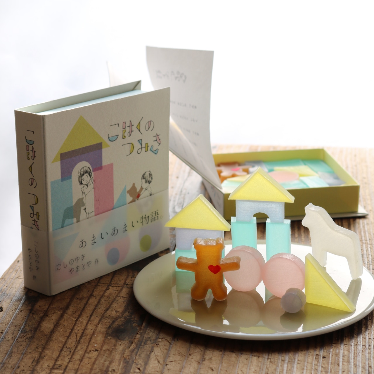 きらきらと輝く琥珀糖でつみきを作りました。