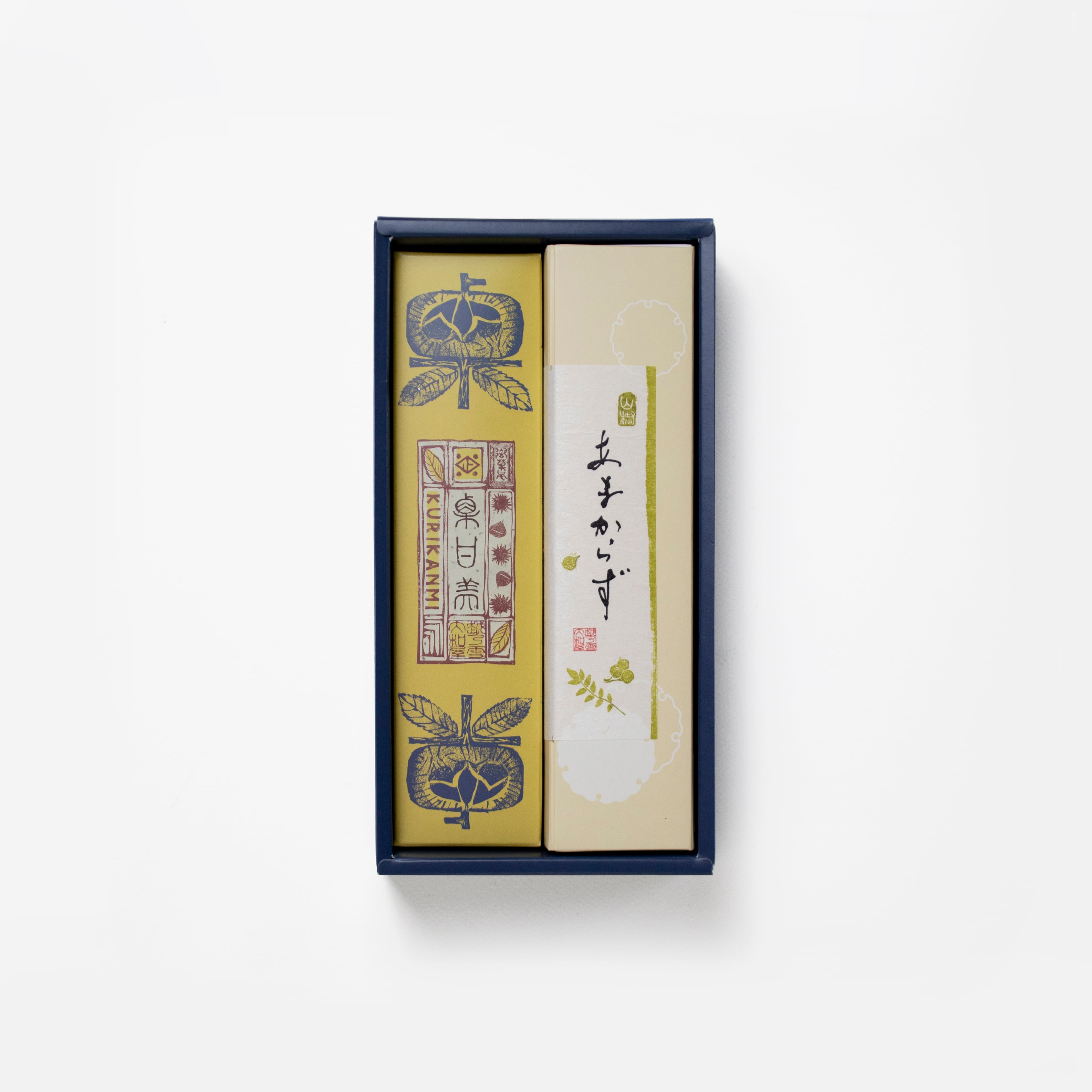 人気の栗甘美と、山椒がピリッと効いた醤油味のお煎餅「あまからず」をお詰合せに。